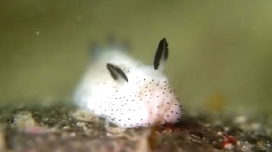 Pierwszym okazem w naszym Pawilonie Dziwów jest ten oto przeuroczy stworek. Łacińska nazwa stworzonka to Jorunna parva, przez mieszkańców Japonii ochrzczony jako Morski królik. Teraz uwaga!!! Zastanawiacie się pewnie czym to tak właściwie jest. Otóż jest to ŚLIMAK! Wypustki, które wyglądają jak uszy służą zwierzątku do wyczuwania zapachu i smaku, podobno organizm jest też bardzo czuły na zanieczyszczenie środowiska.